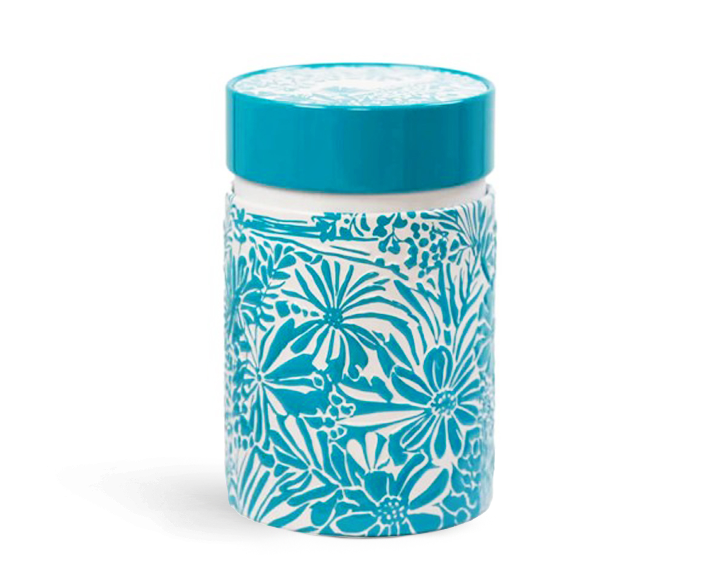 Its vibrant blue botanical motif evokes seaside gardens, wild herbs, and traditional ceramics.