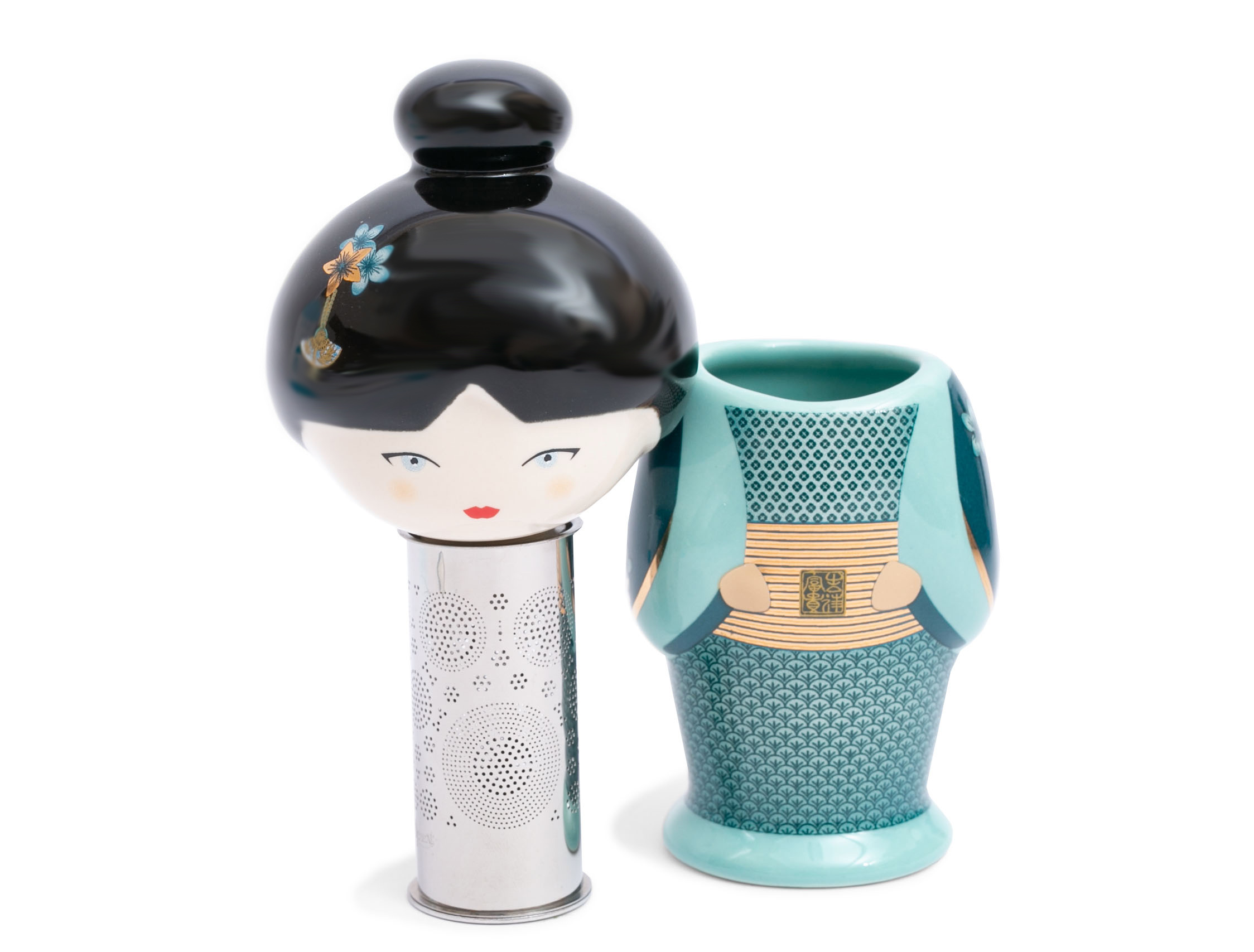 A lovely ceramic doll with an integrated stainless steel metal filter. Such an unusual sieve is a real work of art that captivates at first glance! The design of the doll is thought out to the smallest detail and reflects the culture of the different tea-producing countries: India, China, Japan. Each doll has its own unique style, which is transferred to ceramics exclusively by hand. The upper part of the chrysalis also serves as a cover for the steel filter. The volume of the filter is designed for brewing a cup of tea. Imagine how atmospheric the process will be! The filter has a fine perforation, so that no tea leaves get into the tea infusion, and you can fully enjoy your favorite drink. A shiny sieve in the form of the princess will be an excellent gift or a good purchase for personal use.